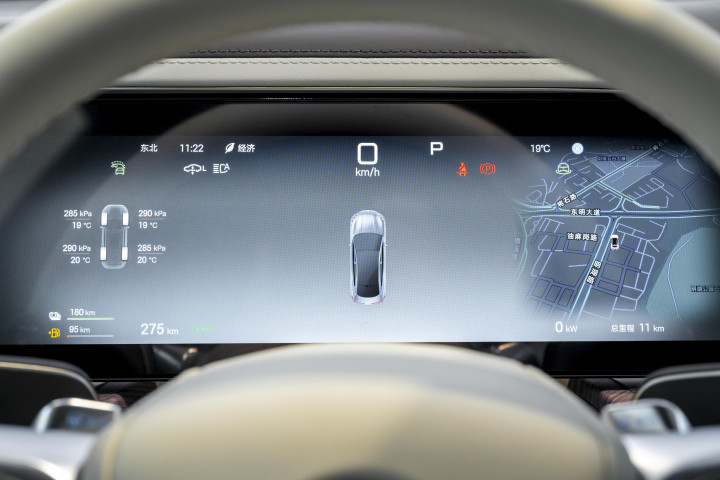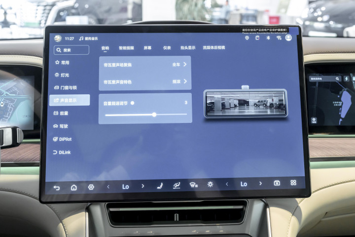 腾势Z9 DM的内饰设计风格崇尚简约,但科技感十足。三块大尺寸屏幕的配备,营造出浓厚的科技氛围。17.3英寸的中控屏、13.2英寸的副驾驶娱乐屏以及13.2英寸的全液晶仪表盘,不仅画质清晰,而且方便用户观看和操作。