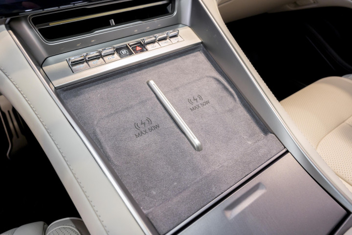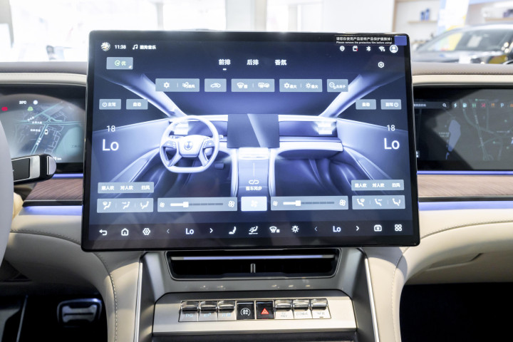 中控台下方巧妙地设置了空调出风口和实体按键,包括车辆启动/停止和EV/HEV模式切换等常用功能,操作便捷。智能互联功能也十分丰富,卫星导航、蓝牙电话、手机互联映射、面部识别和语音识别等功能一应俱全。更值得一提的是,它还支持分区域语音识别唤醒功能,驾驶者、副驾驶和后排乘客都可以通过语音指令来控制车辆,例如调整空调温度或查询导航路线,无需手动操作,大大提升了驾驶的便利性和安全性。